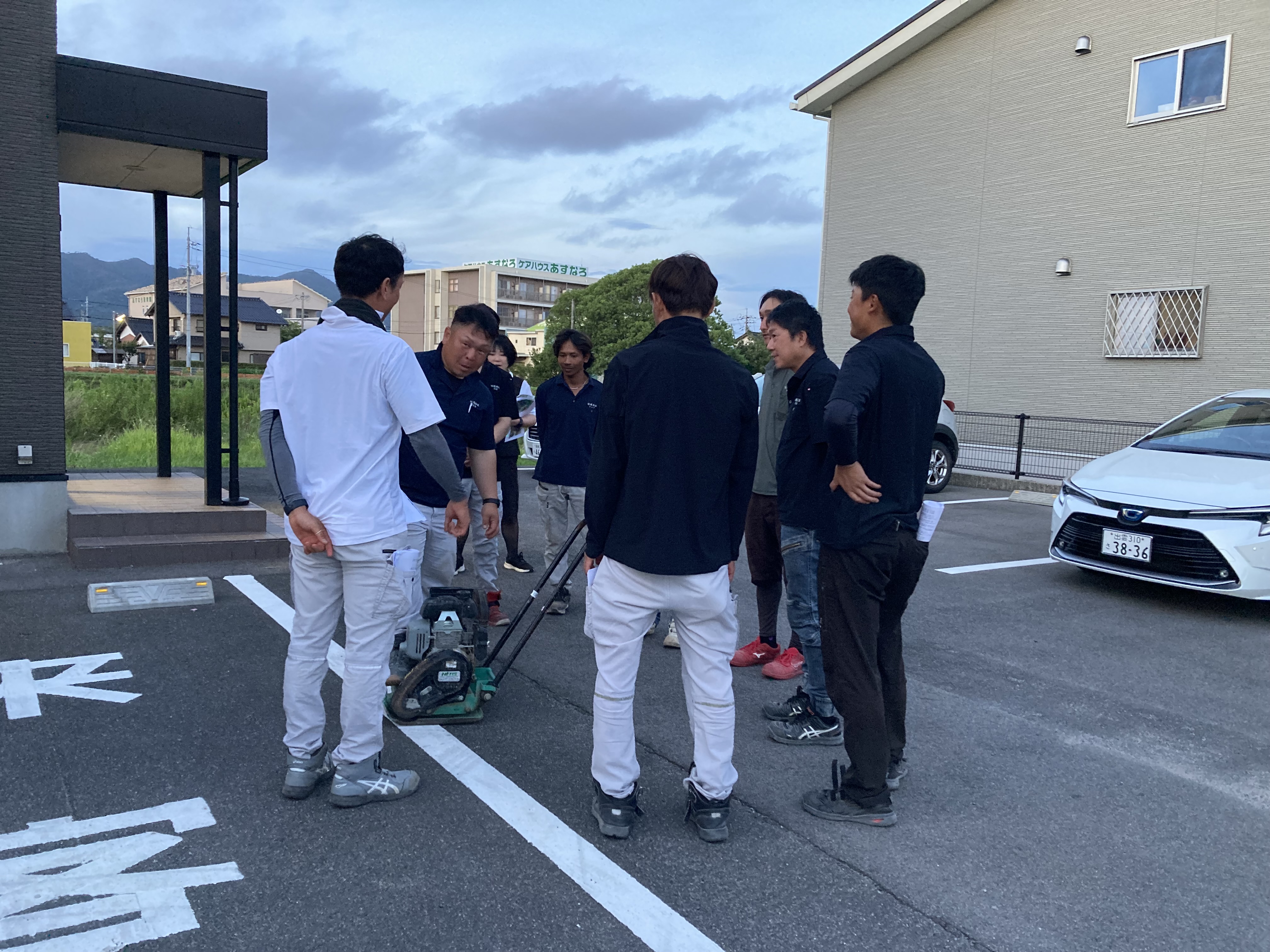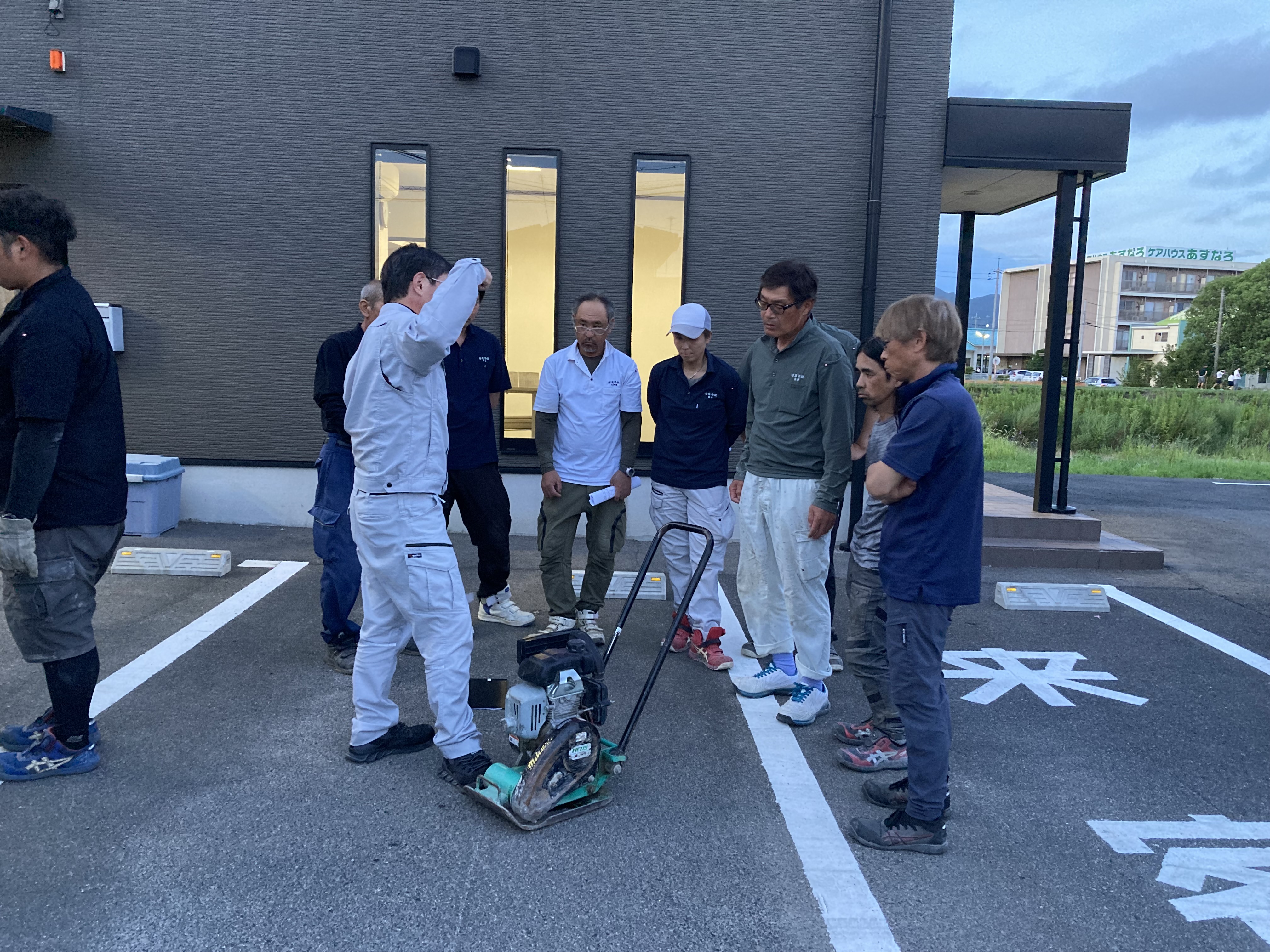 転圧機の使用方法を再確認! 2025.09.04 お知らせ 尾添組社員全員で地盤を固める『転圧機プレート』の使用方法講習会を開きました。 3班に分かれて講習を実施したのち、最後に一人ずつテストを行いました。 使用頻度が一番多い転圧機なので、基本的な使用方法を皆で再確認でき、 とても良い時間になりました。 これからも末永く 愛着を持って使用していきます。 ご安全に!! 一覧に戻る